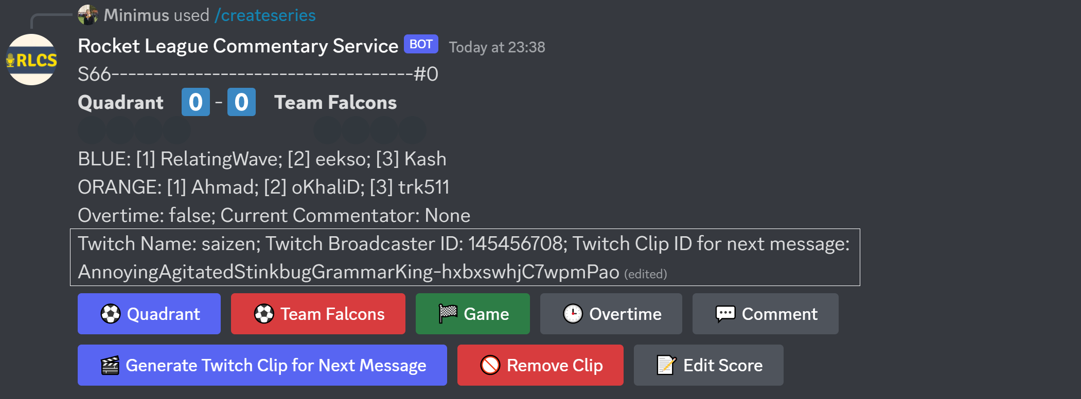 Now we’ll Generate Twitch Clip for Next Message. We can now see a Twitch Clip ID which is staged on the series, and ready for publishing: